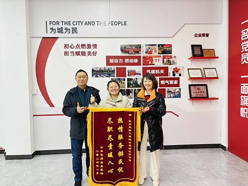 2026年的第一個工作日,心懷感激的高女士專程來到濱江分公司,將一面寫有“熱情服務(wù)排民憂,盡職盡責(zé)暖人心”的錦旗送到工作人員手中。黨支部書記韓國強接過錦旗,誠摯地說:“用戶的信任是我們前進(jìn)的最大動力。保障每一位居民的用氣安全,始終是我們工作的重中之重。”這番話語,也讓在場所有人更加堅定了“為民服務(wù)”的初心。