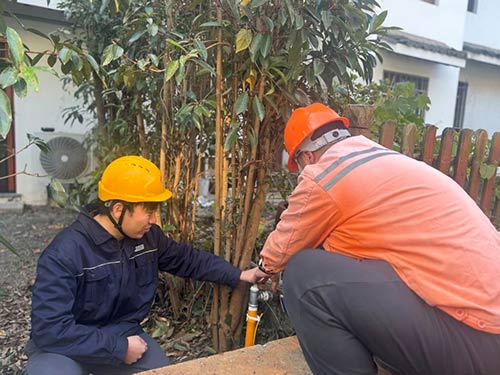 景區(qū)違章占壓處理,難在“規(guī)范”與“利益”的平衡,更難在多方人員的協(xié)調(diào)統(tǒng)籌。農(nóng)居點建筑密度高、歷史遺留問題多,一處違章占壓往往涉及居民、村委、用戶權益及服務發(fā)展公司的工作協(xié)調(diào)。龍井村某戶院內(nèi)的搭建物長期占壓燃氣管道,但考慮到拆除后影響居民生活、村委顧慮等連鎖反應、用戶憂慮停氣損失,多方訴求交織,協(xié)調(diào)難度極大。面對此類“牽一發(fā)而動全身”的復雜情況,輸配運行分公司天目運行管理站副站長杜澤民帶領樣板責任人深入天竺、滿覺隴、龍井村、三臺云舍等十余個農(nóng)居點,分公司習理員、天目運行管理站站長鐘奇協(xié)調(diào)城管、街道、村委,挨家挨戶走訪、確認管線,累計開展現(xiàn)場協(xié)調(diào)60余次,耐心講解安全規(guī)范,傾聽居民實際困難,形成村委牽頭、用戶配合、公司落實的多方聯(lián)動,將“硬性整改”轉(zhuǎn)化為“柔性協(xié)商”,逐一破解“不愿拆、不敢拆、不能拆”的難題。在滿覺隴某歷史違建占壓整改中,部分居民抵觸情緒強烈,杜澤民以身作則,白天與居民算“安全賬”、“長遠賬”,晚上聯(lián)合施工員研究整改方案,歷時半年最終通過調(diào)整管線走向、優(yōu)化施工流程,既保障了居民正常生活,又徹底消除了安全隱患。這種“啃硬骨頭”的擔當,也帶動了團隊的攻堅熱情,相關樣板負責人張俊華、何強保對所有樣板區(qū)域內(nèi)的管線開展“地毯式”排查,爬屋頂、鉆夾縫,逐條管線核對走向、逐個占壓點登記建檔,累計徒步排查里程超200公里,每戶形成“一占壓一方案”整改清單,為精準施策提供了第一手數(shù)據(jù)支撐。
